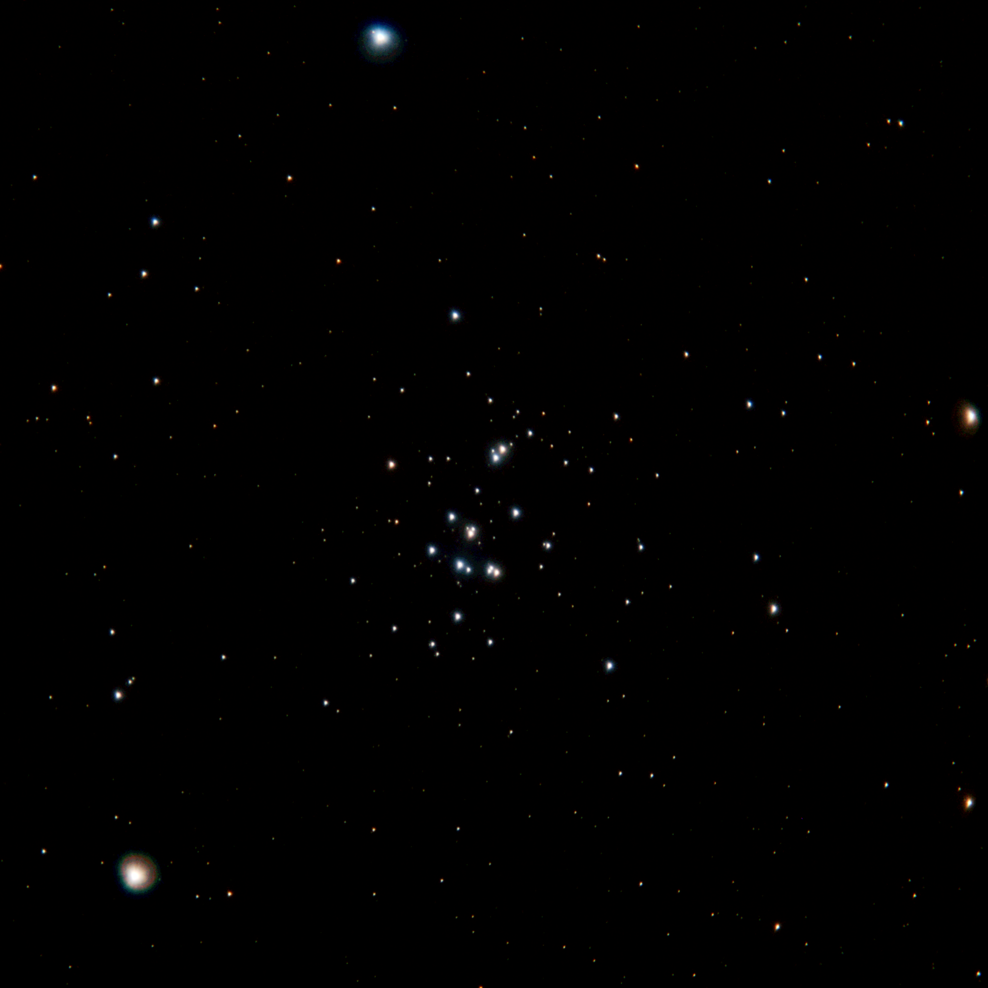 Yesterday’s image of M44 Praesepe, or the “Beehive” cluster. This was taken using my old 135mm Pentax fitting lens, with a mild Barlow in the Pentax to Nikon adapter. I use it because it’s faster than my other lenses; f/2.8 as opposed to f/5.6 on a telephoto set at 200mm, or f/4.5 on a zoom set at 70mm. The image quality is not as good as that from the Nikon zoom set at 200mm, but exposure times are much shorter. I need to be patient!