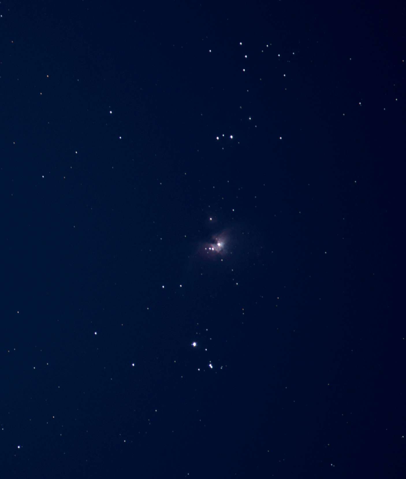 I am pleased that this shows much more structure in the nebula than the cropped image from a 35mm lens photo in February. It will clearly benefit from an even longer exposure but that might have to wait until next winter as Orion is getting pretty far west now in the evenings.