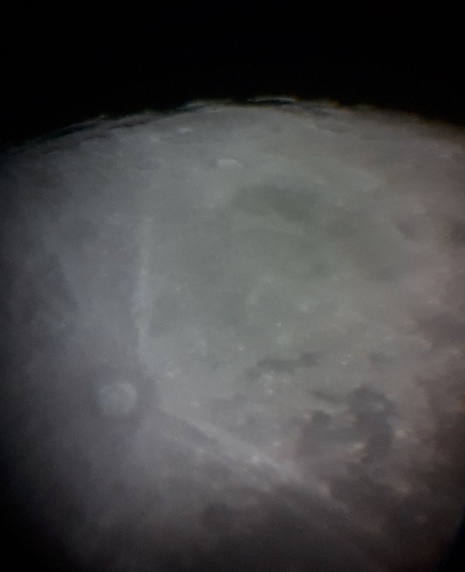 I did take a photo of the Moon with this; you can see the bright crater Tycho with its bright rays, and some craters in shadow near the south pole (at the top).