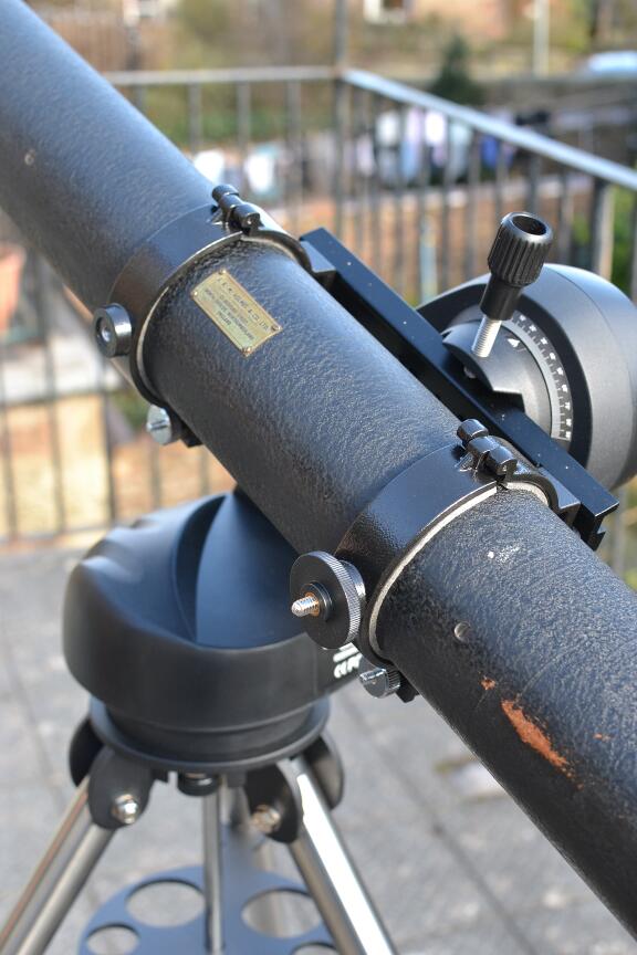 You can see that the telescope is now supported on a more sturdy metal cradle to fit the dovetail slot on the mount.