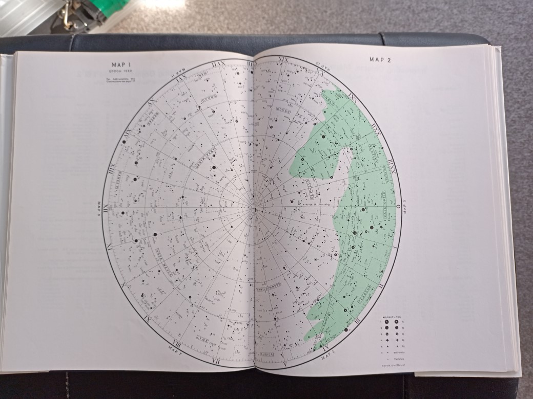 I was pleased to find a copy recently in a second hand bookshop for my brother Bill who is also doing a bit of astrophotography. It’s in great condition, and has been somewhat updated. The star maps are very clean – mine are scribbled on!