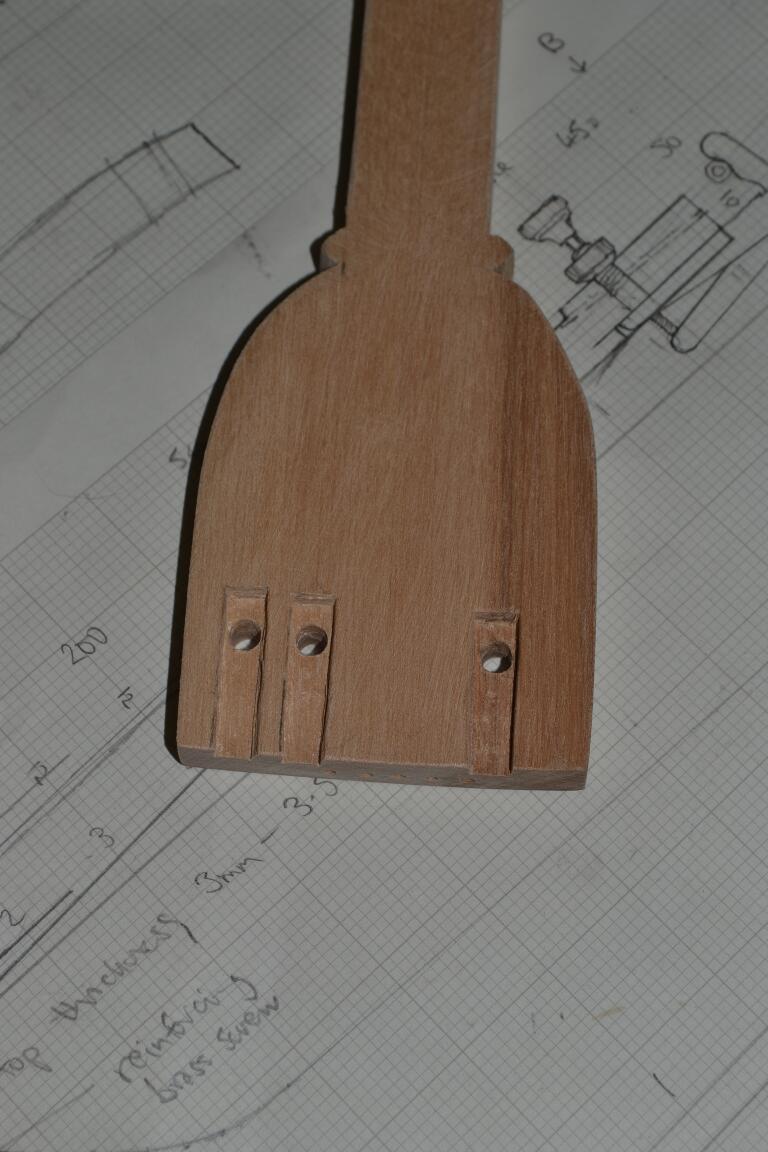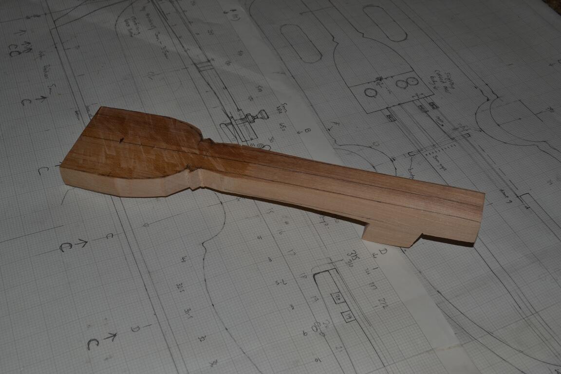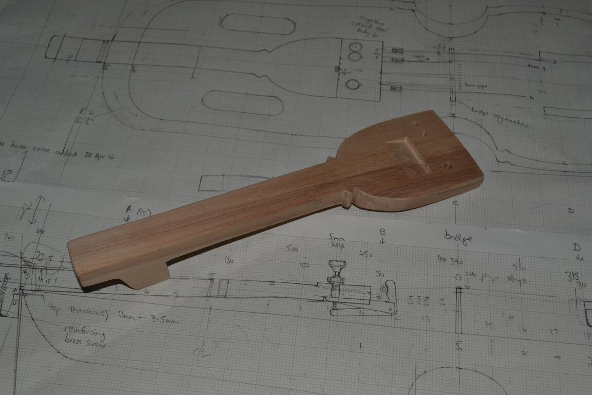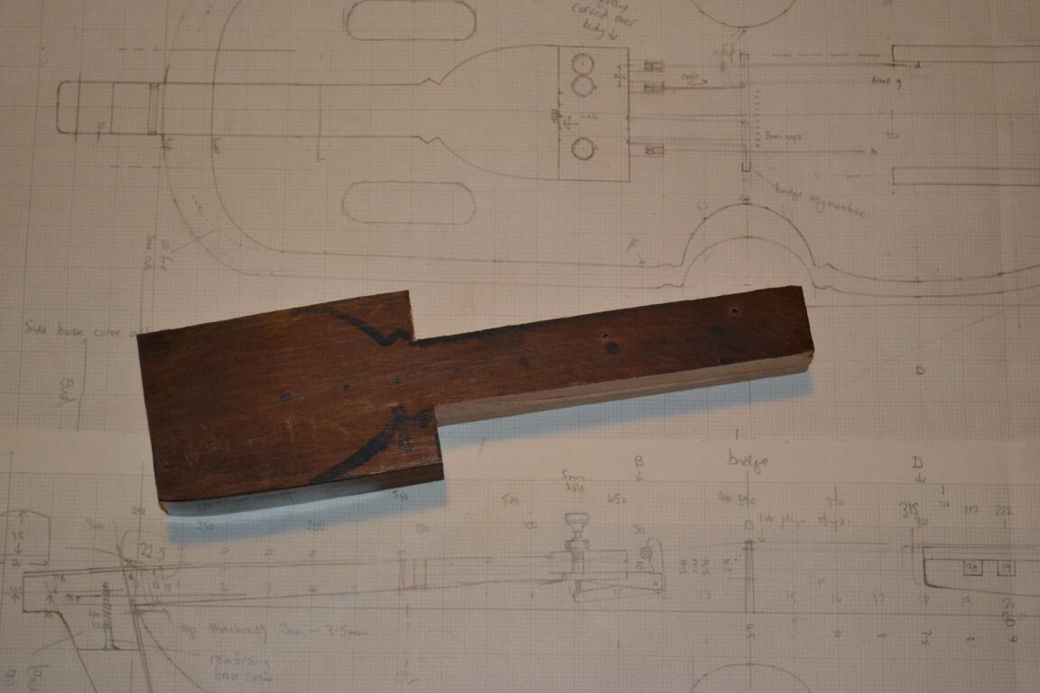 Finally, the fine tuners are attached – now it’s time to make the bridge … (you can see I’m putting off the keys until last )