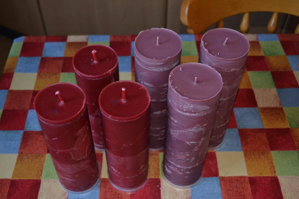 Recycling time – ready for the dark nights of winter (which are already upon us!). It takes two or three years to collect this much wax from old candles …