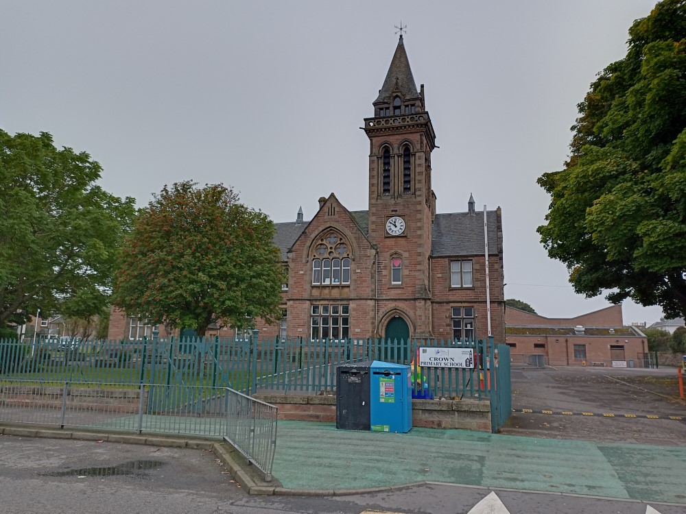 Just beyond the church is the Crown Primary School, which several of Marwyn’s friends attended; she went to Aldourie School (now clearly solar powered!) out along the south side of Loch Ness.